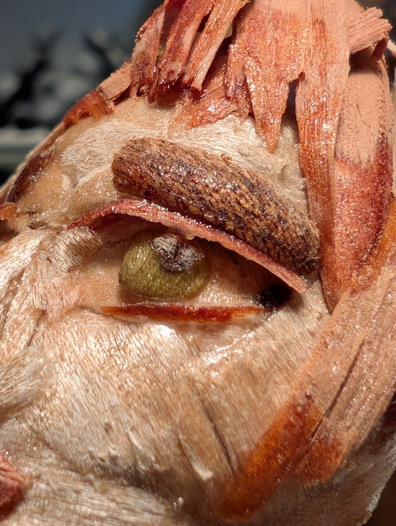 Cornered is built from maple, dogwood, mahogany, aromatic cedar, and Osage orange, with just a tiny bead of poplar green for her eyes. I’m hoping to have her finished this month as I’ve seen the next sculpture. There seems to be much to say in this current world disorder.