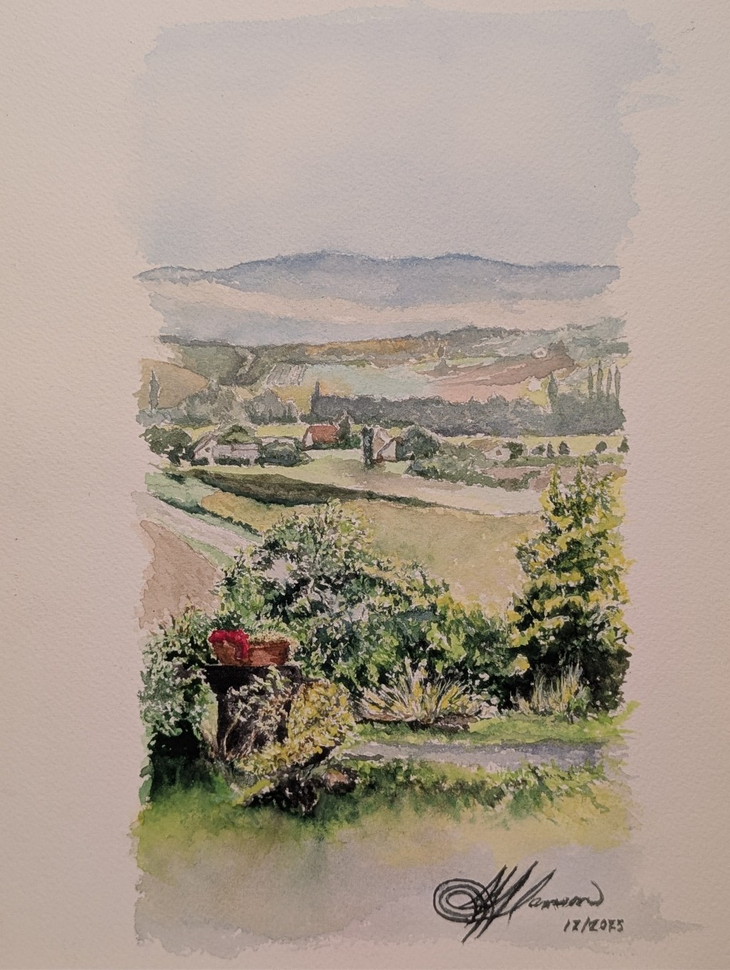 Now, this is a tall order because while I sculpt in about anything, paint (oil), sketch in graphite and pastels, I don’t DO watercolor. If you had the pleasure, everyday, of walking a kilometer to and from school in rural Southwest Germany, through medieval mists and tiny villages, over winding gravel roads, past vineyards and crop fields at sunrise and sunset, well, every single photo of yours would also look like a water color. It just HAD to be a watercolor.